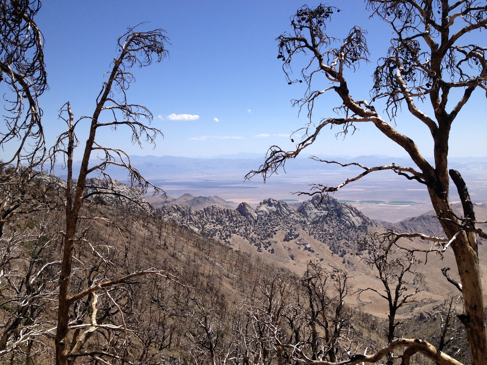 I hiked into the evening, past more wind turbines, and through a landscape charred by fire.  I eventually cowboy camped right on the trail, worrying about sharp things poking through my inflatable sleeping pad.  I'd somehow neglected to acquire a sheet of Tyvek, which most people put underneath their sleeping mats when they cowboy camped and many even put under their tents when they slept in those.  Tyvek is made for wrapping houses under construction and is very durable and lightweight, but I'd called all three hardware stores in Tehachapi and it was only sold there in large rolls.